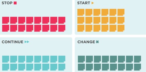 When we are testing and reviewing new or existing employee journeys and experiences, it is useful to have a structured retrospective approach to obtaining feedback. The Stop, Start, Continue, Change Canvas provides that structure.